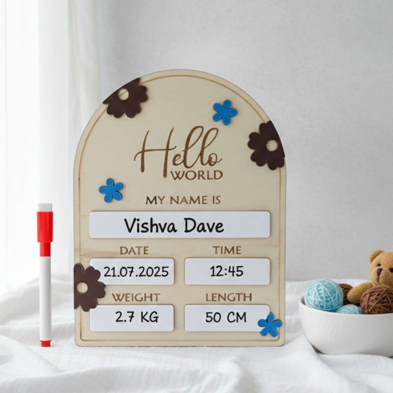 Welcome your little one in a special way with this Baby Birth Announcement Board by Laser Art. This elegant Hello World Newborn Name Board is designed for capturing beautiful first moments and creating lifelong memories.